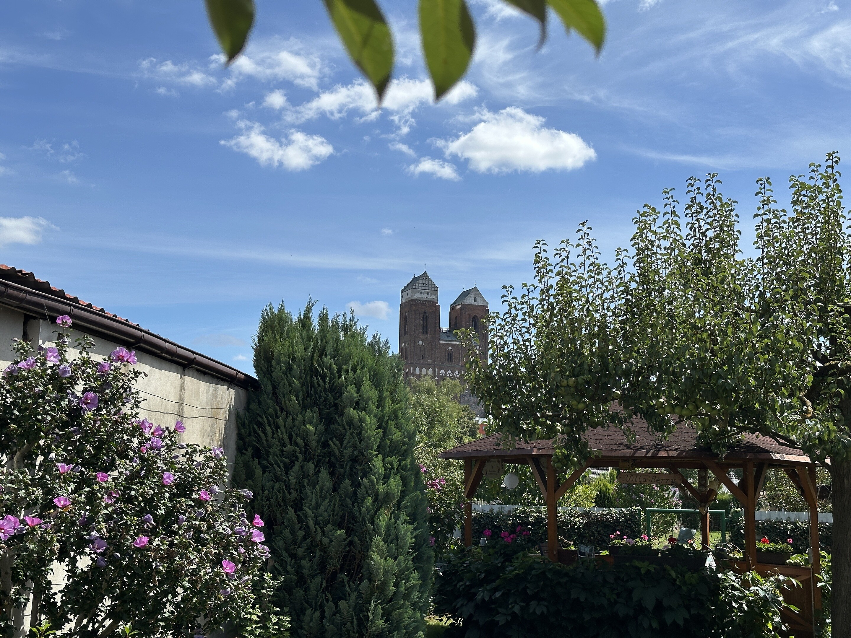 Details: Außenbereich mit Pavillon, Blick auf die Marienkirche