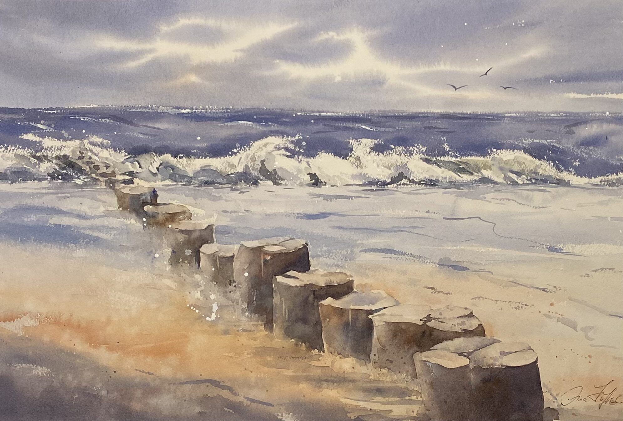Ina Höffler ist leidenschaftliche Hobbymalerin. Begonnen hat sie vor einigen Jahren mit der Aquarellmalerei. Inzwischen interessiert sich die Künstlerin für unterschiedliche Techniken und Materialien, die es heißt … mal auszuprobieren . Arbeiten mit Marmormehl, Sumpfkalk, das Herstellen von Farben mit wunderbaren Pigmenten und auch das Malen mit Acrylfarben auf Leinwänden.