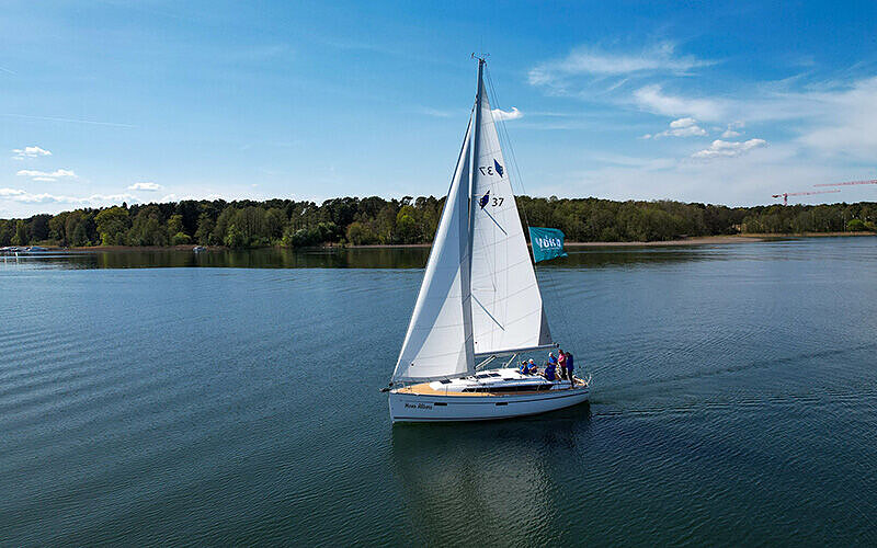 • Mitsegeln auf einer 10 Meter Segelyacht in Brandenburg auf dem Scharmützelsee, Foto: Steffen Lelewel, Lizenz: AHOI Mitsegeln